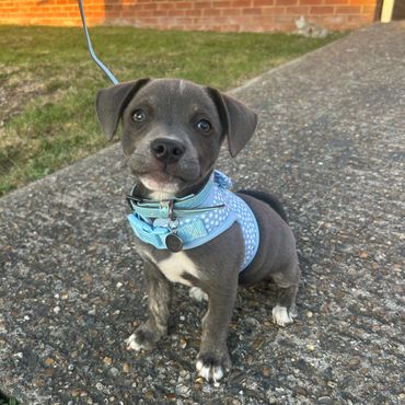 Her current dog is the brilliant and lively Odin (Staffy x Lurcher) with a big personality! He’s full of energy and loves spending time with Ellie on walks and no matter how busy she is will always give her them puppy eyes for playtime.